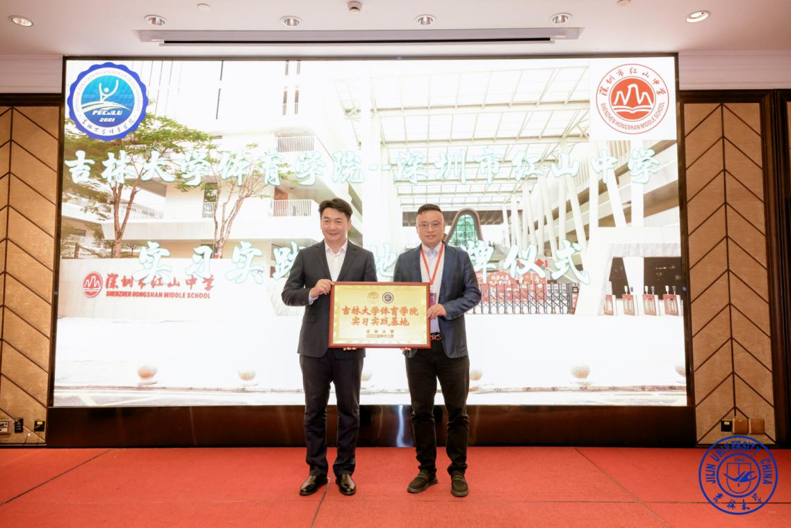 向深圳市红山中学授予实习基地牌匾,标志着双方在体育教育实践与人才培养方面建立起正式合作关系,为在线老虎机